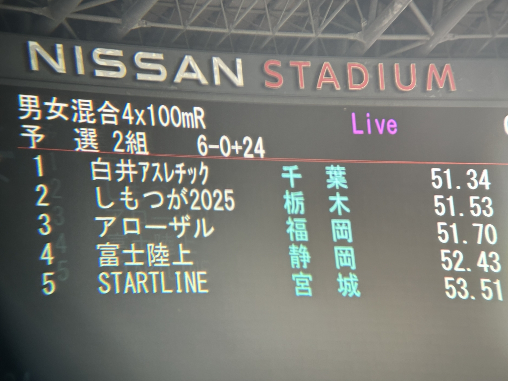度チーム新記録51秒34をたたき出し,組1位,全体4位でA決勝へ。
