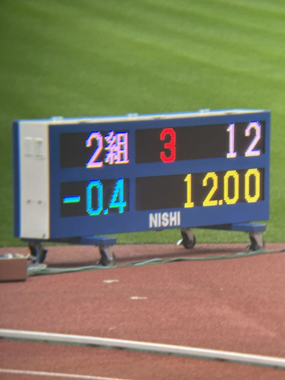予選2組 1着でゴール!いきなり,12秒フラット 自己記録更新!