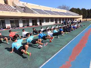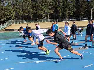 中距離の各種目に別れて、基礎基本の動きづくりや