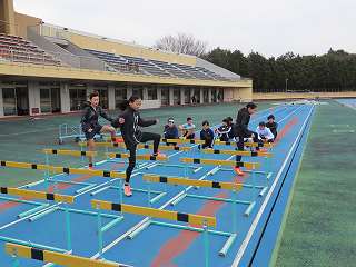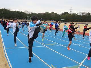 離、走り高跳びの各種目に別れて、厳しい北風が