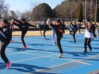 中距離の各種目に別れて、基礎基本の動きづくりや